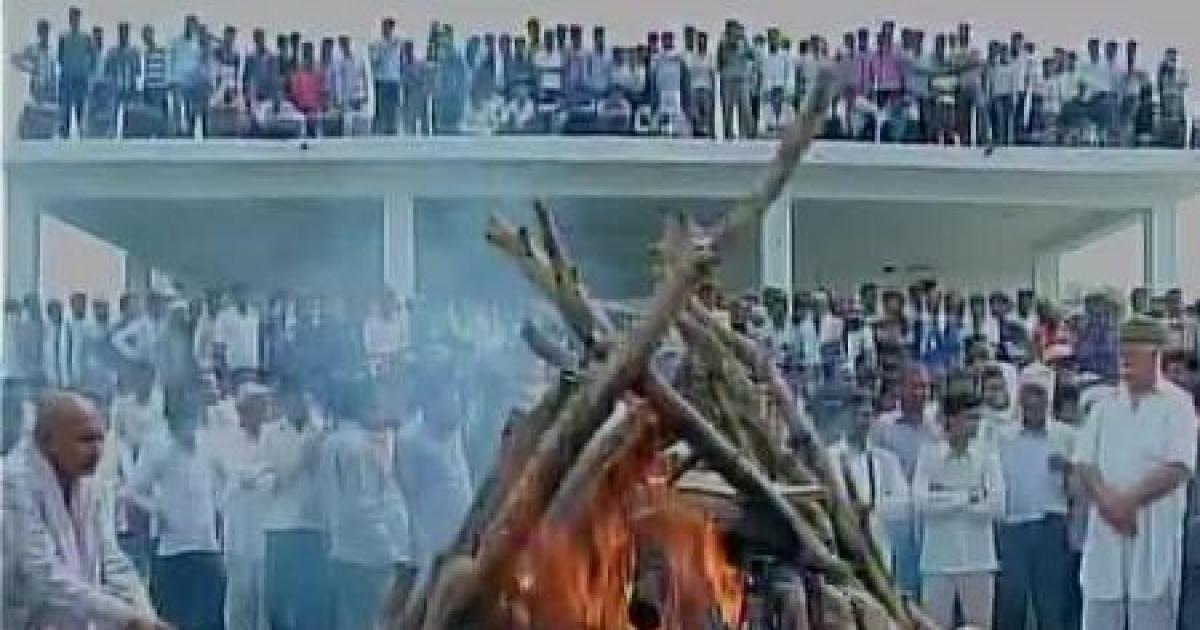 Gajendra Singh, who committed suicide at an Aam Aadmi Party rally in Delhi, was cremated at his native village on Thursday in the district, with a large number of people including politicians converging.