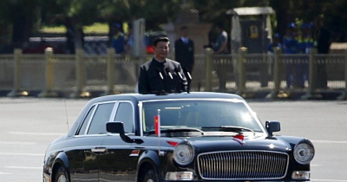 Image: Chinese President Xi Jinping stands in a car after he reviewed the army, during the military parade marking the 70th anniversary of the end of World War Two, in Beijing, China, September 3, 2015.