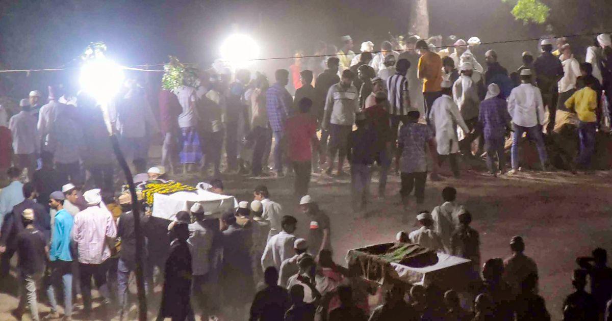 Mediapersons were not allowed inside the graveyard, where lighting arrangements were made for the burial proceedings.