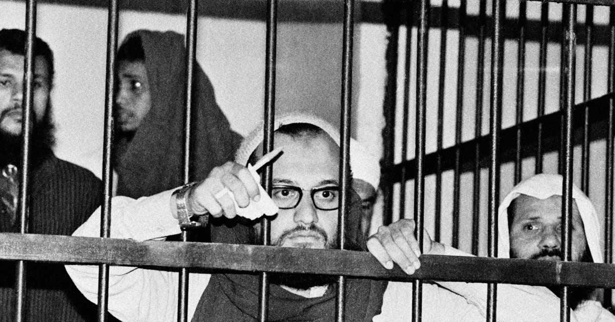 IMAGE: Ayman Al-Zawahiri stands behind bars in an Egyptian court in 1982 during his trial as one of the masterminds behind the assassination of Egyptian president Anwar Sadat in 1981.