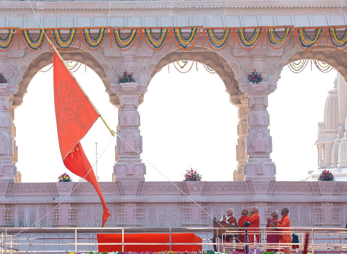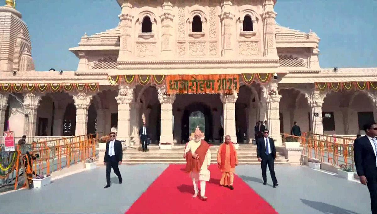 Glimpses of the Shri Ram Janmabhoomi Mandir in Ayodhya during the Dhwajarohan (flag hoisting) ceremony, in Ayodhya on Tuesday, November 25, 2025.