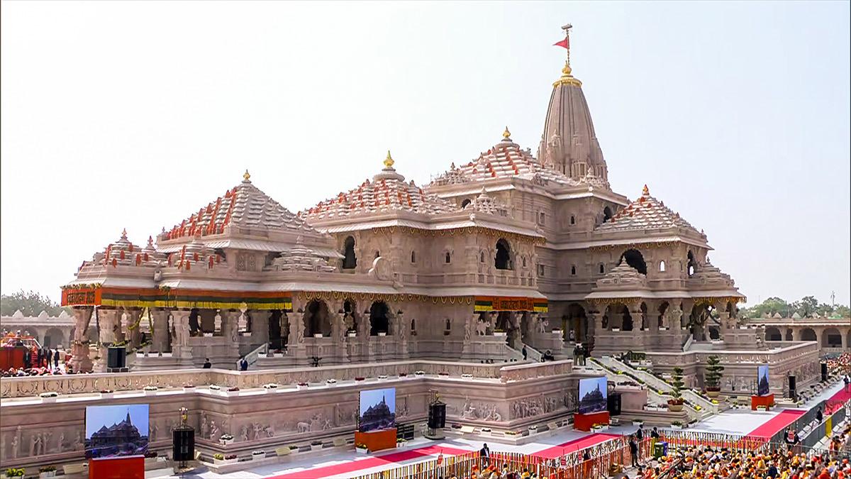 IMAGE: A view of the Shri Ram Janmabhoomi Mandir. Photograph: Video Grab/ANI Photo