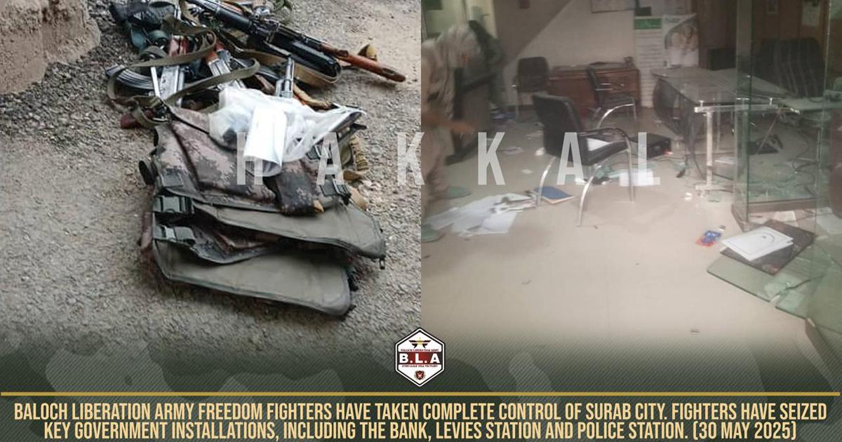In a significant escalation of the ongoing Baloch insurgency, the Baloch Liberation Army has claimed responsibility for a large-scale armed operation in Surab city, asserting complete control over the area and targeting key state installations.