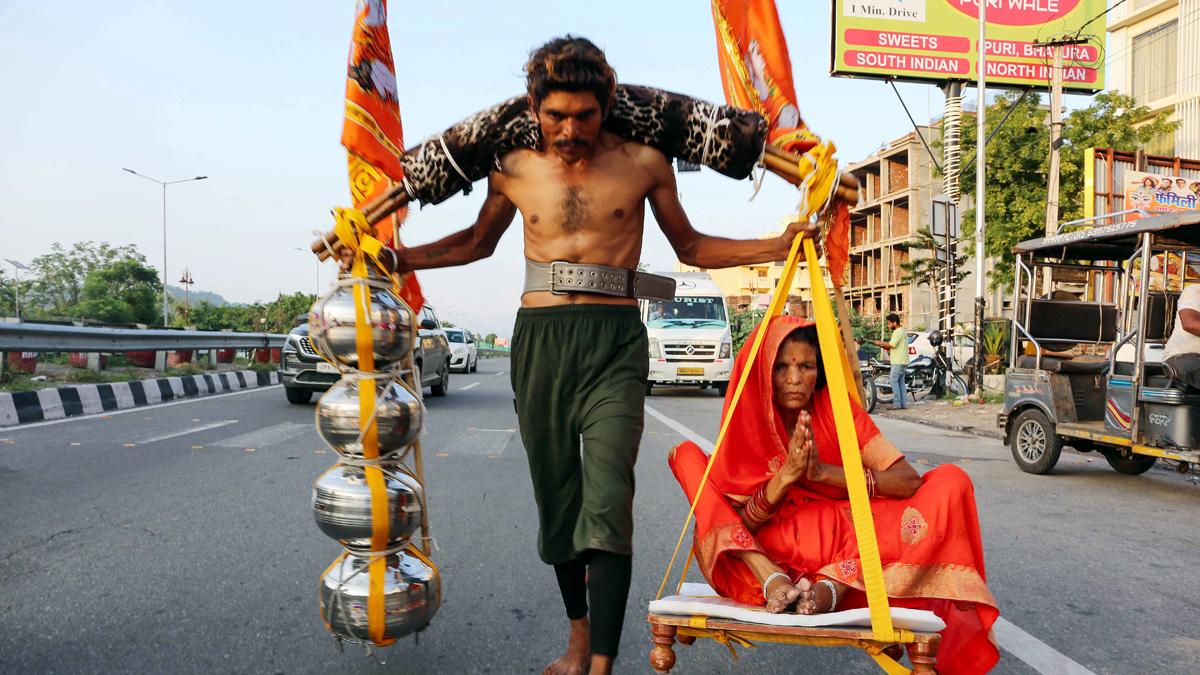 Kanwar is a portable frame, usually made from bamboo, to carry water from the Ganga River in the containers attached to it on either end.