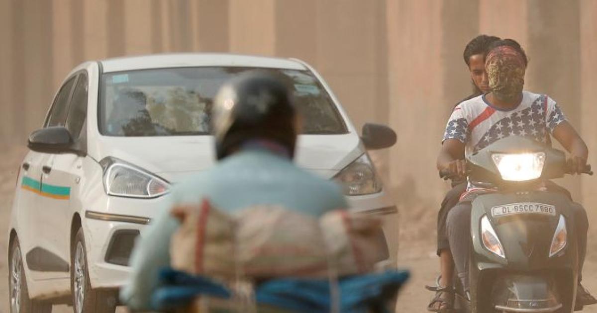Image: A man with his face covered with a scarf rides his scooter on a smoggy day in Delhi. The air quality index at 363, was in the ‘very poor’ zone. Photograph: Cathal McNaughton/Reuters