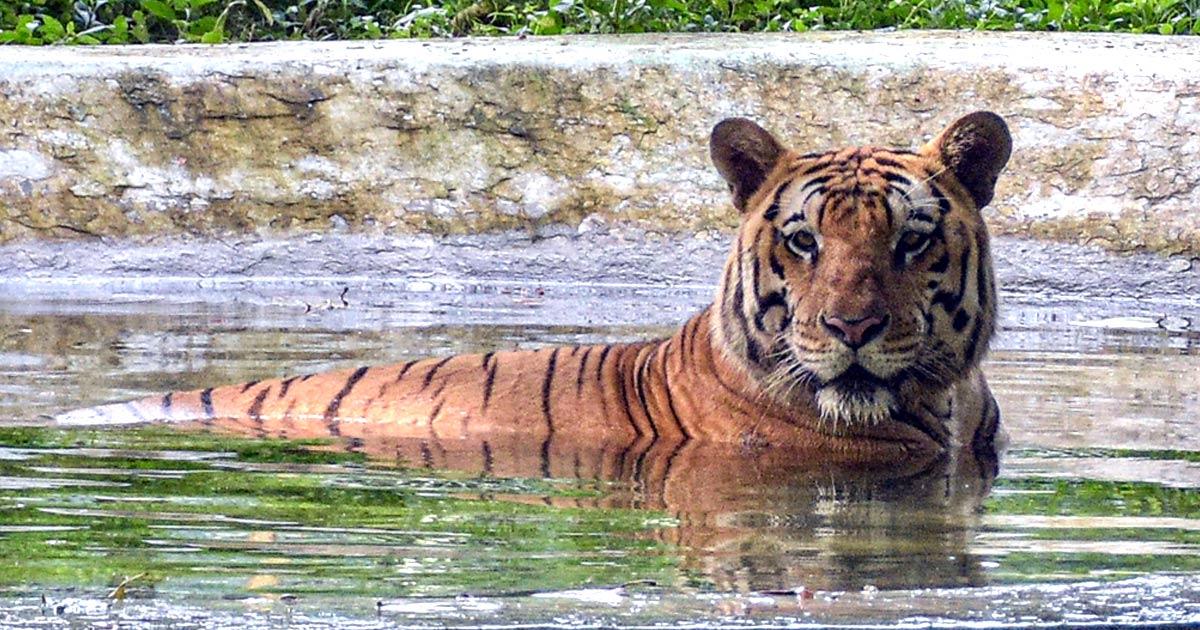 IMAGE: A tiger cools off in the pond. Photographs: ANI Photo