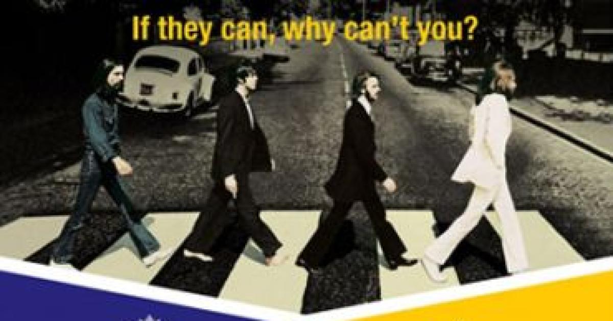 With Beatles' founder John Lennon dressed in an immaculate white suit leading the band over a zebra crossing, the advertisement asks pedestrians, "If they can, why can't you?"