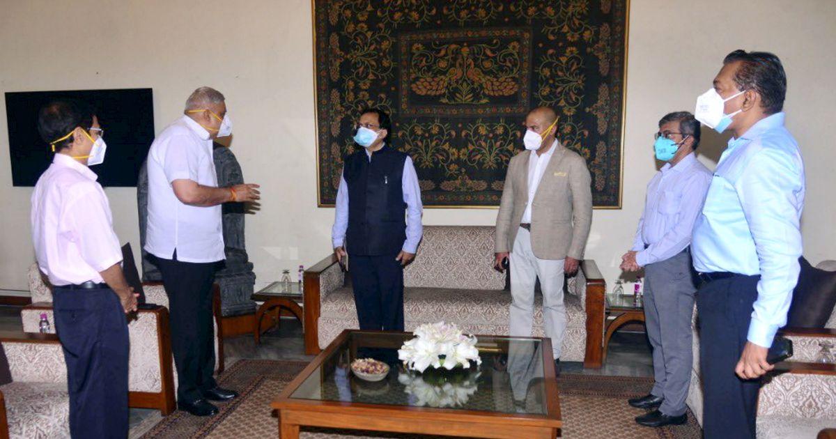 IMAGE: A four member team of Ministry of Home Affairs on post-poll violence led by Additional Secretary (MHA) Govind Mohan calls on the West Bengal Governor Jagdeep at Raj Bhawan, Kolkata, on Friday. Photograph: Kind courtesy @jdhankhar1/Twitter