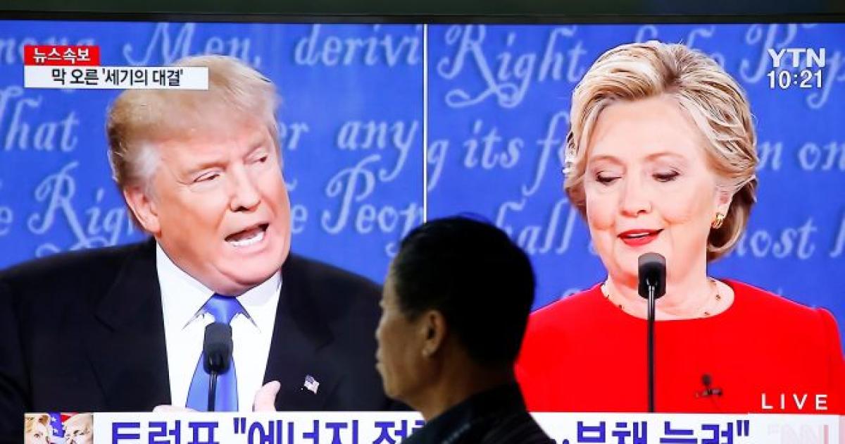 After taking potshots at each other from different platforms, Republican presidential candidate Donald Trump and Democratic presidential candidate Hillary Clinton finally took the stage together for the first time during the first presidential debate at Hofstra University on Monday night in Hempstead, New York.