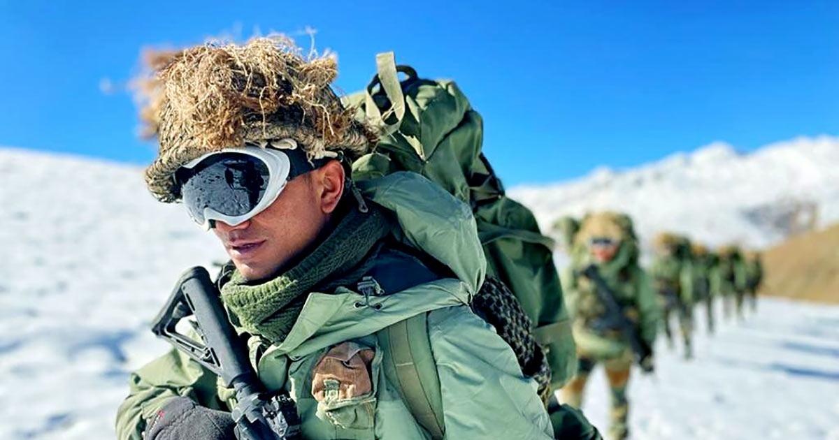 Indian Army personnel participated in a training session in challenging terrain conditions amidst extreme weather in super high altitude areas in Ladakh, November 9, 2021.