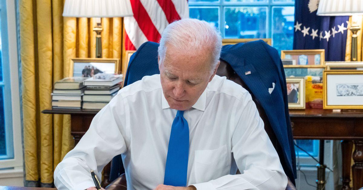 IMAGE: US President Joe Biden signs an executive order to prohibit trade and investment between US individuals and the two breakaway regions of eastern Ukraine recognised as independent by Russia, at the White House in Washington, DC. Photograph: @POTUS/Twitter
