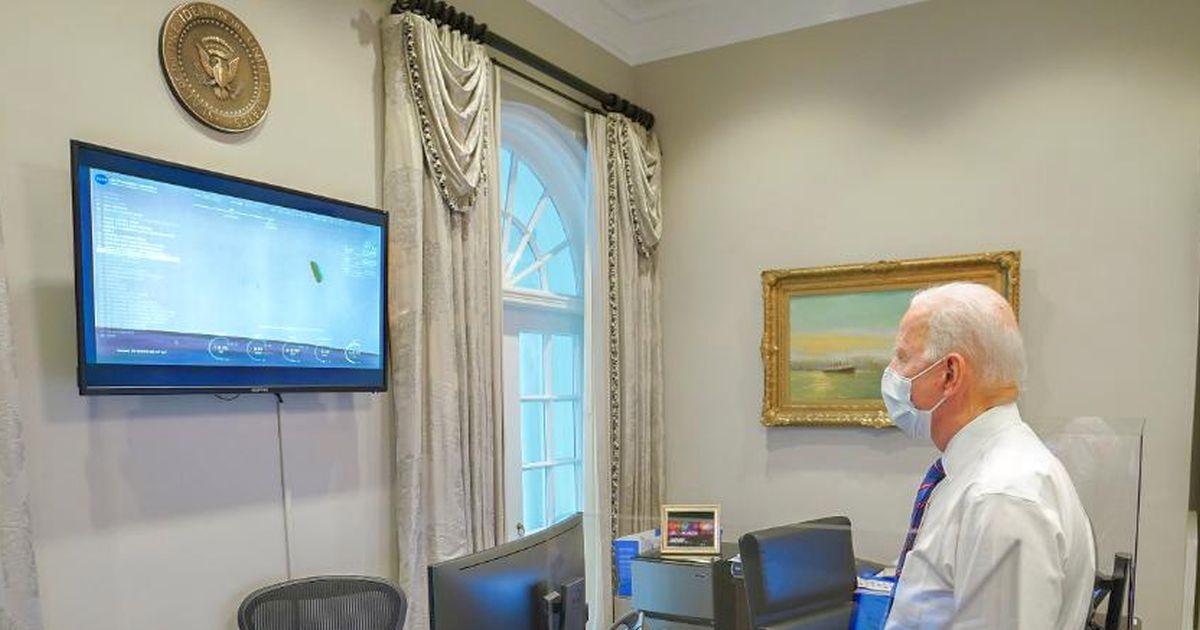 Biden's post also included a photo showing Biden watching the landing on television at the White House.
