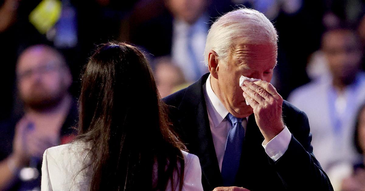 IMAGE: Joe Biden wipes away tears after being introduced by daughter Ashley during Day one of the Democratic National Convention in Chicago, August 19, 2024, here and below. Photograph: Brendan Mcdermid/Reuters