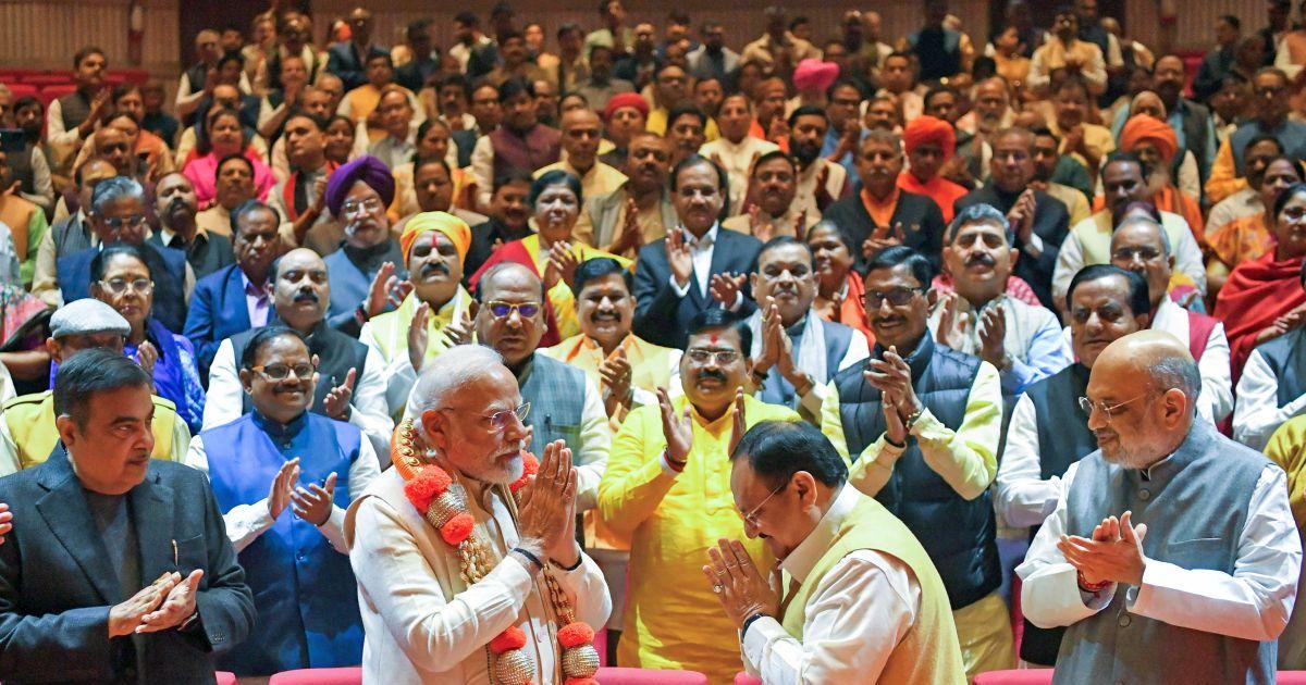 Party MPs raised slogans lauding his leadership as senior leaders, including BJP president J P Nadda, felicitated Modi at the first meeting of the BJP Parliamentary Party in Parliament's winter session.