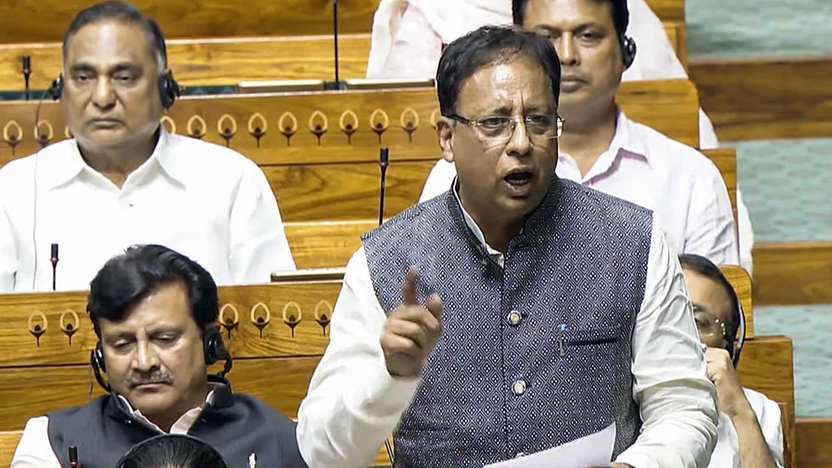 IMAGE: BJP MP Sanjay Jaiswal speaks in Lok Sabha during the Monsoon Session of Parliament, in New Delhi, July 29, 2025. Photograph: Sansad TV/ANI Video Grab