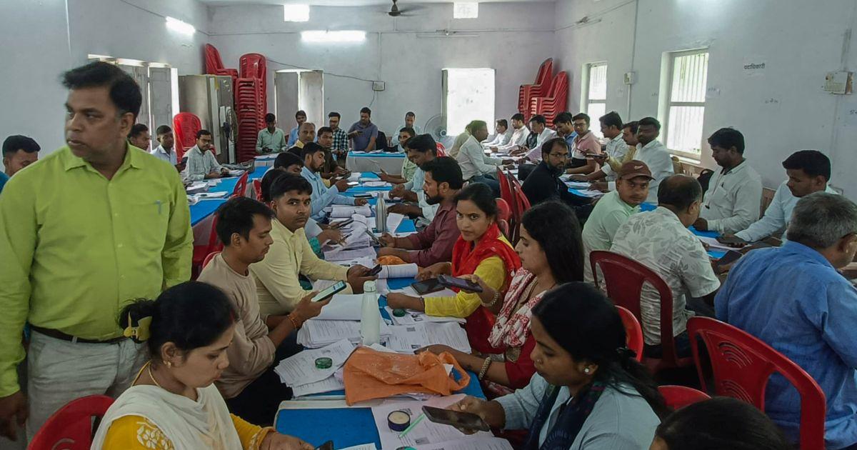 IMAGE: BLOs and BLO supervisors collect and upload the counting forms on the app in the special intensive revision work, in Saran. Photograph: @CEOBihar X/ANI Photo