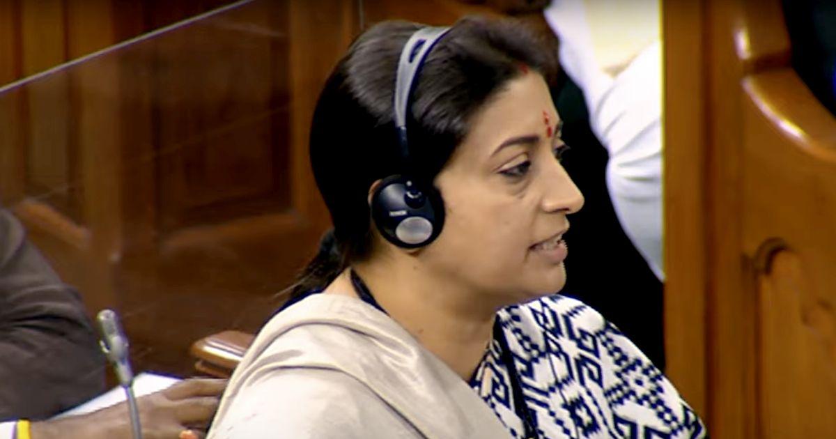 Soon after the introduction of the bill, Irani, the Women and Child Development Minister, urged the Chair to refer it to a standing committee.
