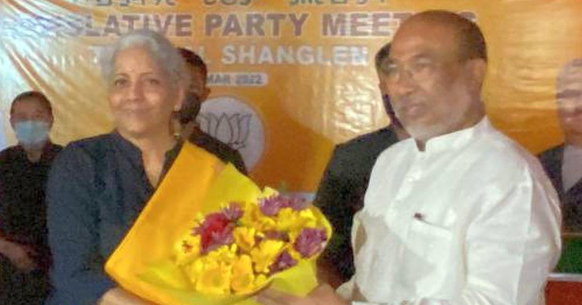 Sitharaman and Union Law and Justice Minister Kiren Rijiju, who is the co-observer, arrived at Imphal earlier Sunday to attend the meeting of the newly elected BJP MLAs in the state.