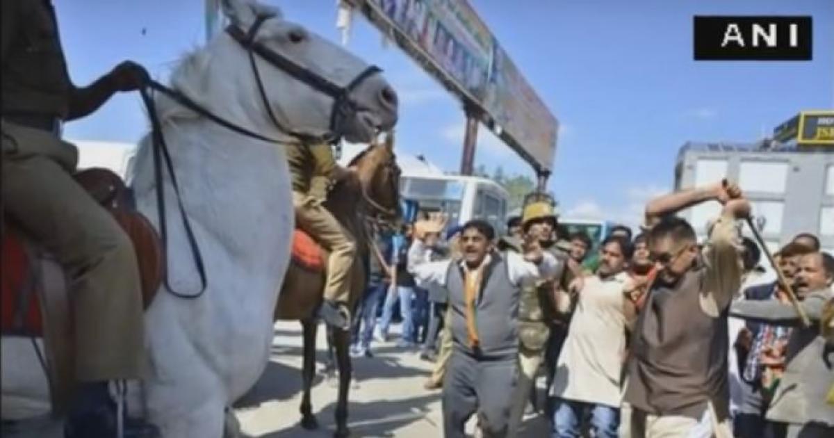 A horse deployed as part of mounted police was injured during a protest march by the Bharatiya Janata Party to the state assembly in Dehradun, Uttarakhand, on Monday with the ruling Congress alleging that it sustained injuries after being attacked by BJP’s Mussoorie MLA Ganesh Joshi, a charge denied by the opposition party.