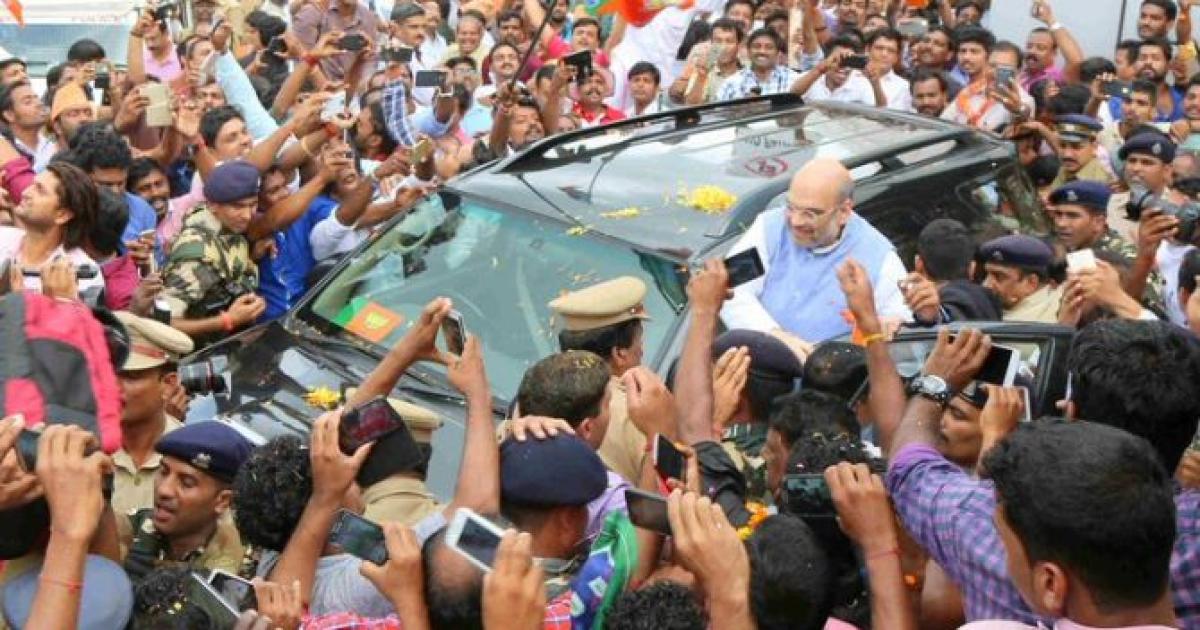 Image: BJP president Amit Shah is welcomed by supporters and followers in Kozhikode. Photograph: @AmitShah/Twitter