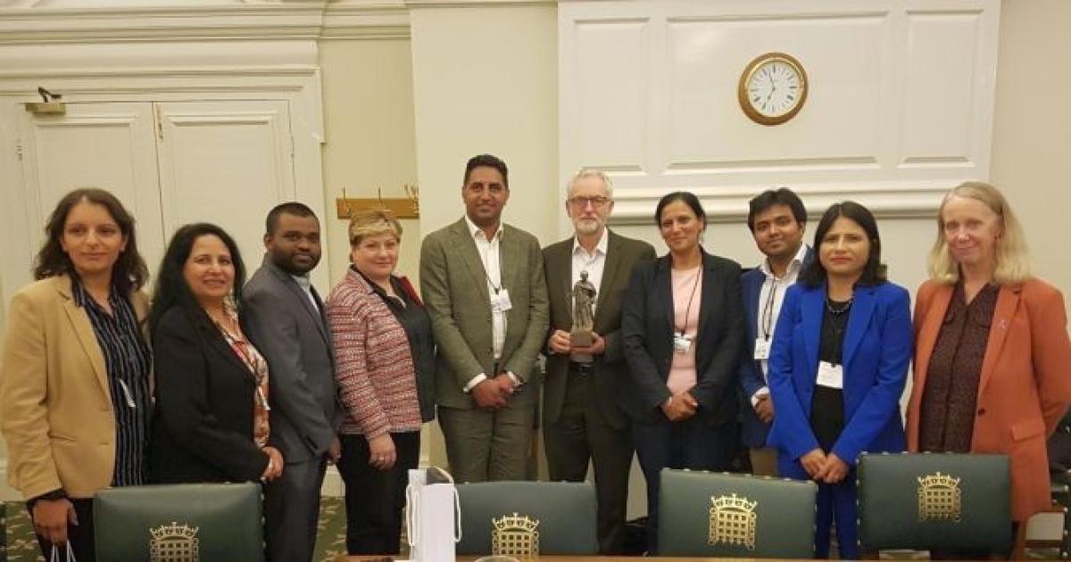 "There must be a de-escalation and an end to the cycle of violence and fear which has plagued the region for so long," notes his statement, alongside an image of him joined by Labour's shadow foreign secretary Emily Thornberry with a group of Congress Party UK delegates in London.
