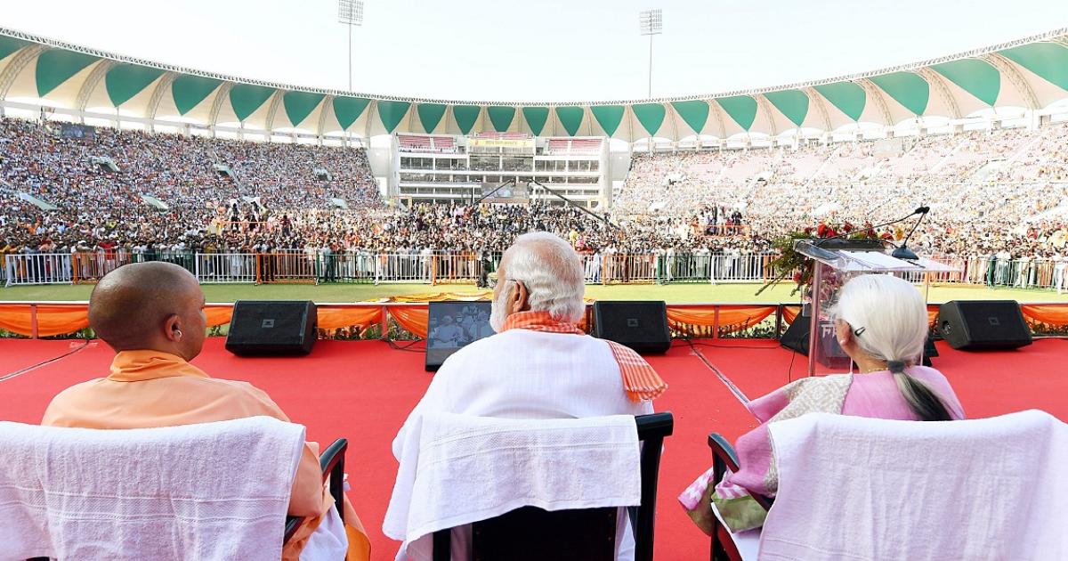 All roads leading to the stadium were decked up with colourful lights, posters of Prime Minister Narendra Modi, Adityanath and other senior Bharatiya Janata Party leaders.