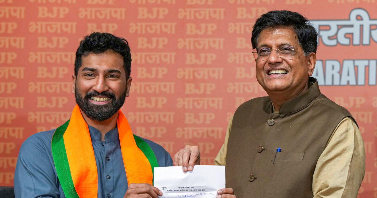 Anil Antony had joined the BJP in the presence of Union ministers Piyush Goyal and V Muraleedharan in New Delhi on Thursday.