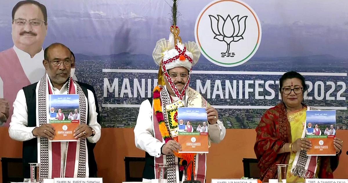 Releasing the manifesto, BJP national president JP Nadda said that under the leadership of Chief Minister N Biren Singh the state has headed towards development in the last five years, tackling the drugs menage and achieving stability with rule of law being established.