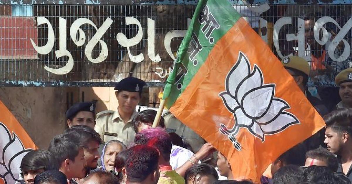 Image: BJP supporters celebrate their win in the assembly elections in Amedabad. Photograph: Santosh Hirlekar/PTI Photo