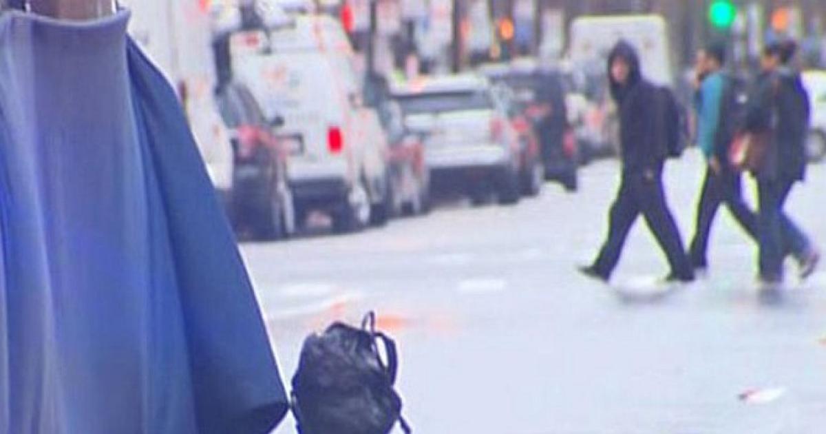 At least one of the bags was being carried by a barefoot man who was wearing a long black veil and screaming "Boston Strong." That man has been identified as 25-year-old Kayvon Edson, CBS News reported.