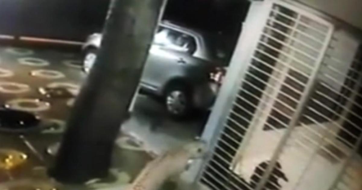 The leopard, apparently hungry, was tying to find a way on the other side of the gate where the dog was already sleeping, and was seen pawing the grill in the footage.