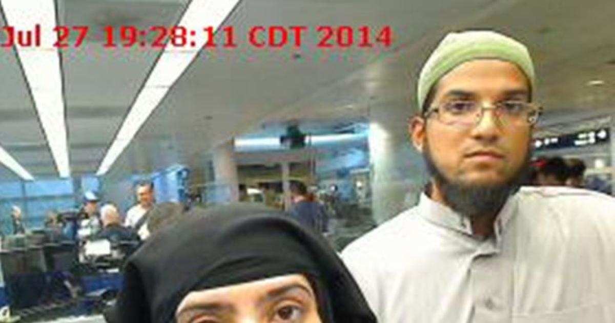 Image: Tashfeen Malik, (L), and Syed Farook are pictured passing through Chicago's O'Hare International Airport in this July 27, 2014 handout photo. Photograph: US Customs and Border Protection/Reuters