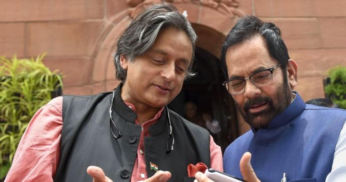 On Thursday, a similar moment was in view when Minority Affairs Minister Mukhtar Abbas Naqvi was in conversation with Congress's Shashi Tharoor over something they saw on Naqvi's phone.