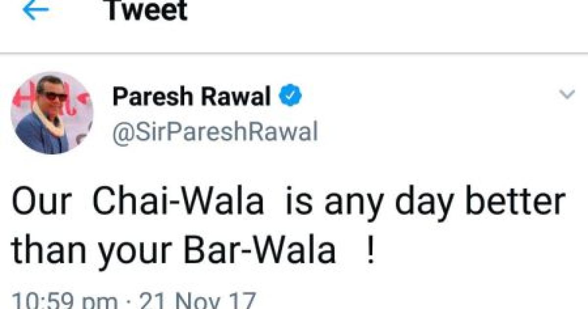 In the tweet that is now deleted, he wrote, “Our chai-wala is any day better than your bar-wala!”