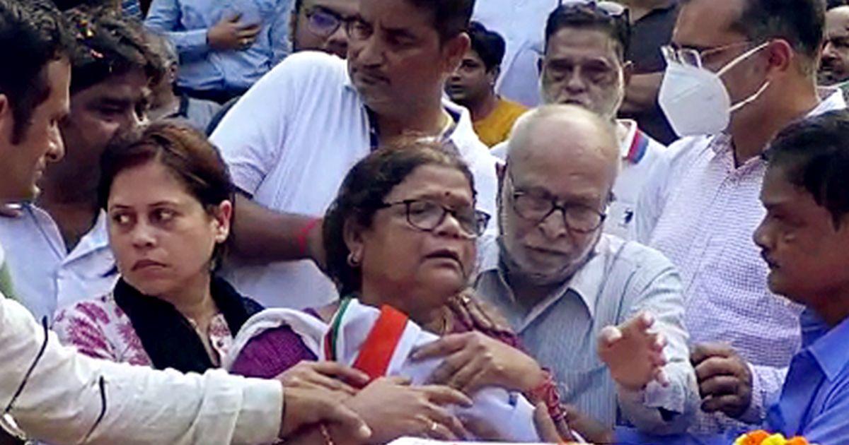 The coffin was kept outside the house for some time for people to offer tribute, with several senior officials of Murshidabad district paying a visit.