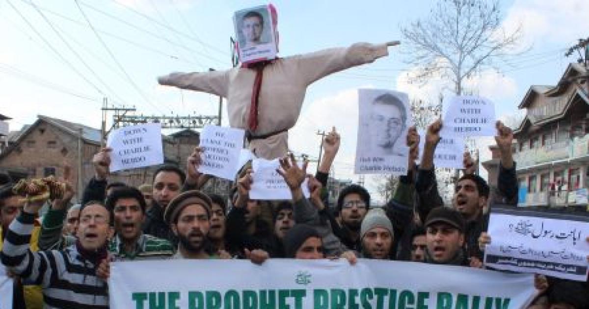 Mutahida Ulema-e-Ahlisunnat Waljamat, an amalgam of various religious organisations in the Valley, called for a strike to protest the publishing of the "blasphemous" caricatures by the magazine.