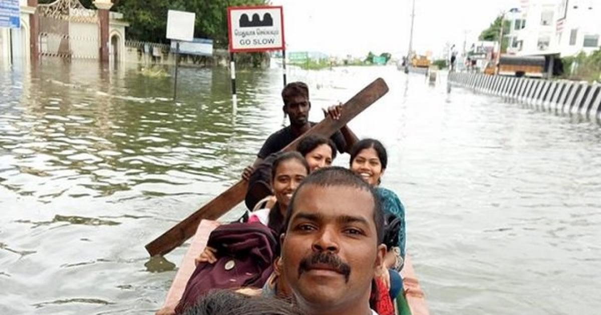 Image: Murthy Megavan and his team of surfers rescued more than 60 people with their kayaks and boats. Photograph courtesy: Covelong Point Social Surfing School.