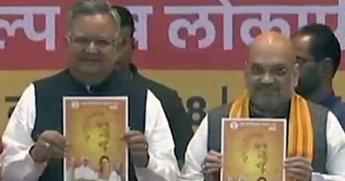 BJP president Amit Shah and Chief Minister Raman Singh released the party’s manifesto, called ‘Sankalp Patra’, two days ahead of the first phase of voting on November 12.