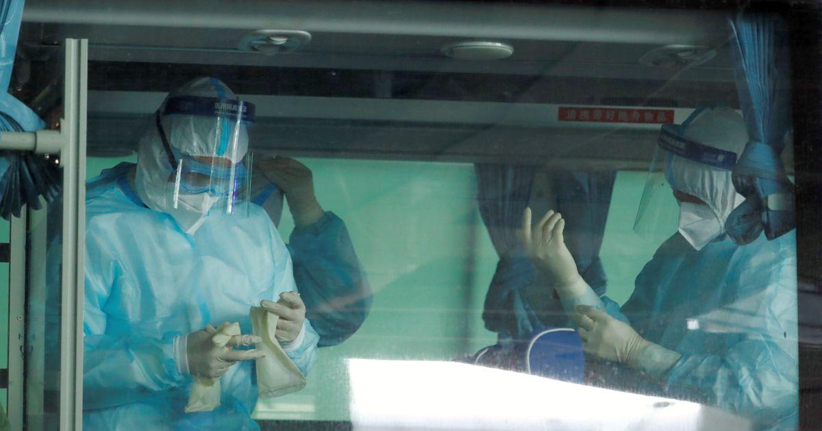 IMAGE: Medical workers get ready inside a bus before the expected arrival of a World Health Organisation team tasked with investigating the origins of the coronavirus pandemic, at Wuhan Tianhe International Airport in Wuhan, Hubei province, China. Photograph: Thomas Peter/Reuters