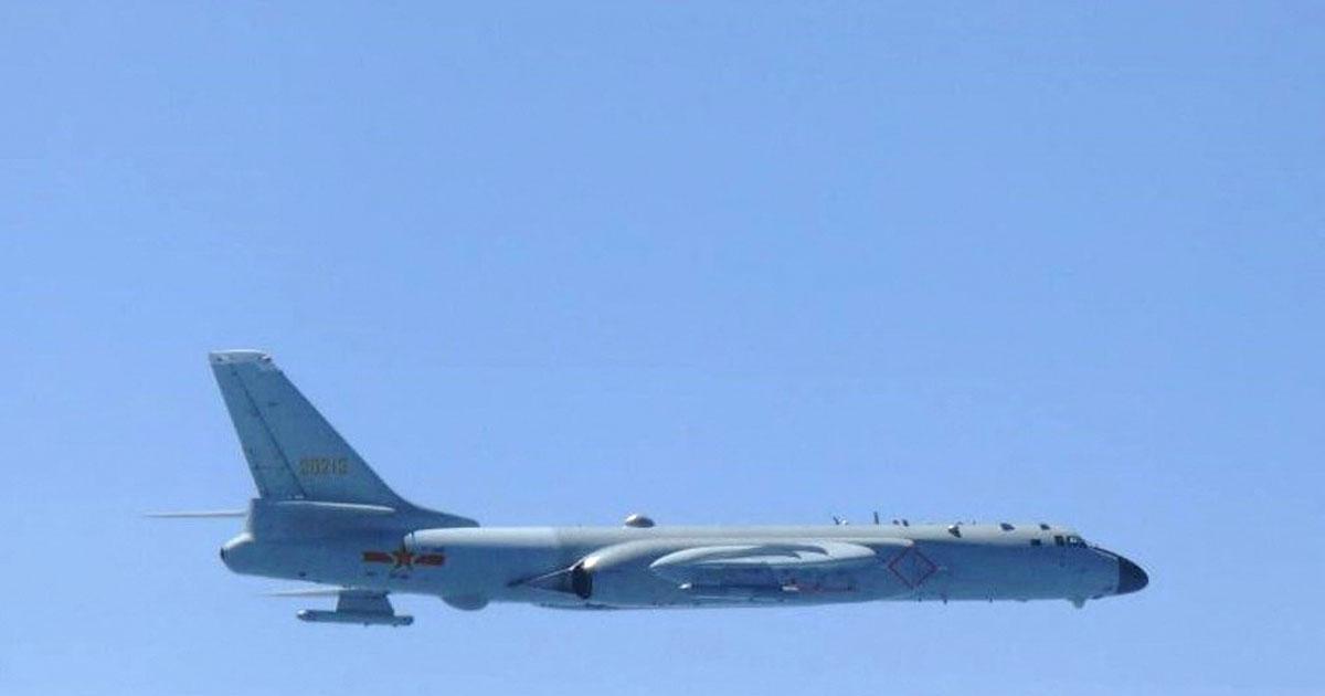 IMAGE: A Chinese H-6 bomber flies over the East China Sea in this picture taken by the Japan Air Self-Defence Force and released by Japan's defence ministry, May 24, 2022. All photographs: Defense ministry of Japan/Reuters