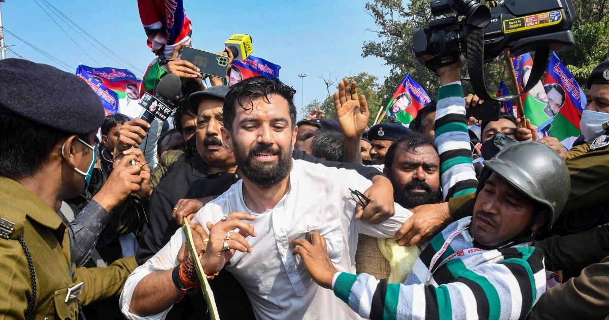 Lok Janshakti Party (Ram Vilas) chief Chirag Paswan and several of his supporters were detained by police that used water cannons and batons to break up a protest on Tuesday demanding dismissal of the Nitish Kumar government over its alleged failure on 'all fronts'.