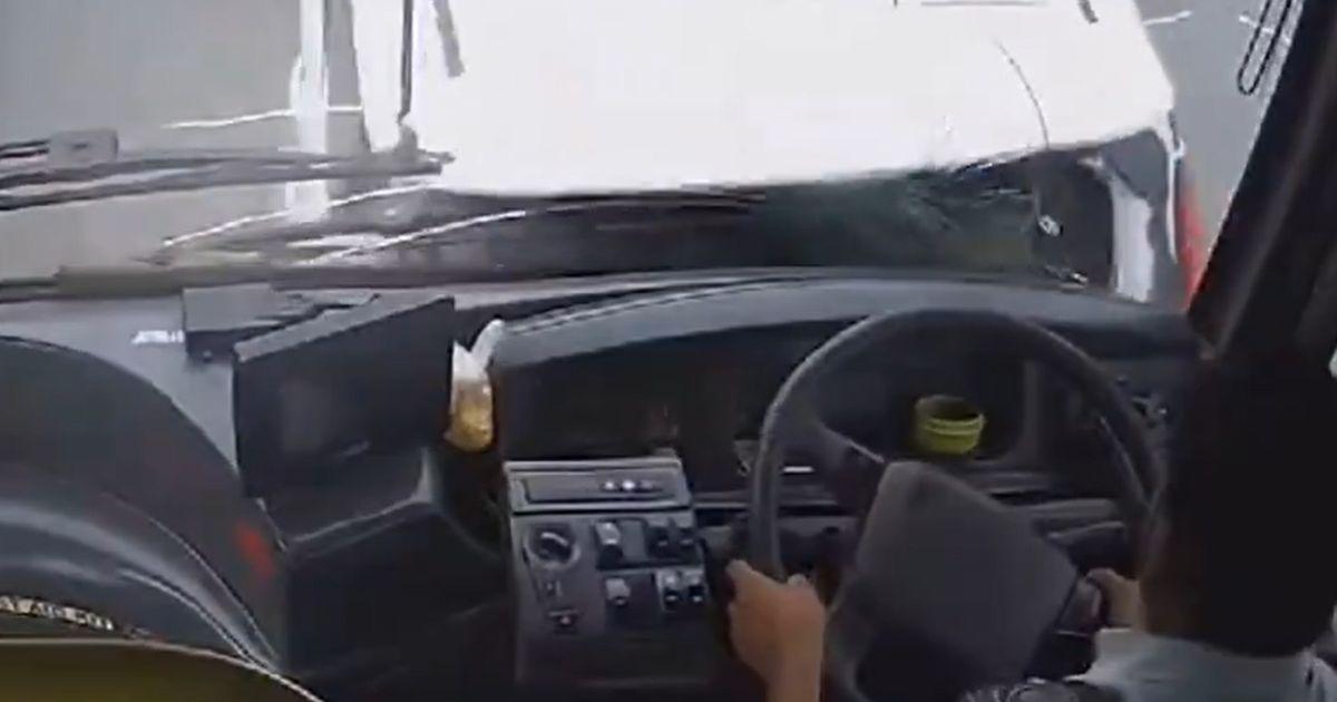 This even as the conductor of the bus was seen asking him to apply the brake.