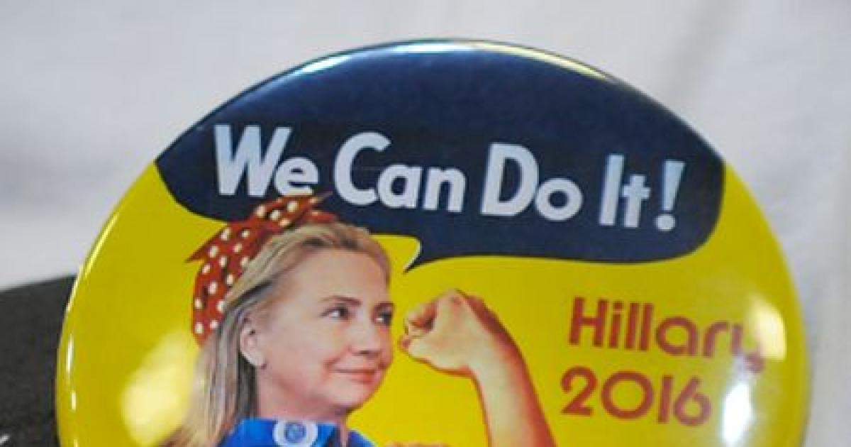 Image: : A Hillary Clinton supporter wears a campaign pin during an event at the North Carolina State Fairgrounds. Photograph: Sara D Davis/Getty Images