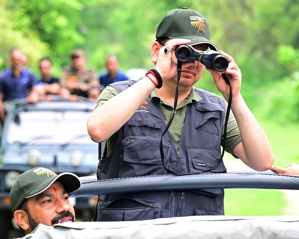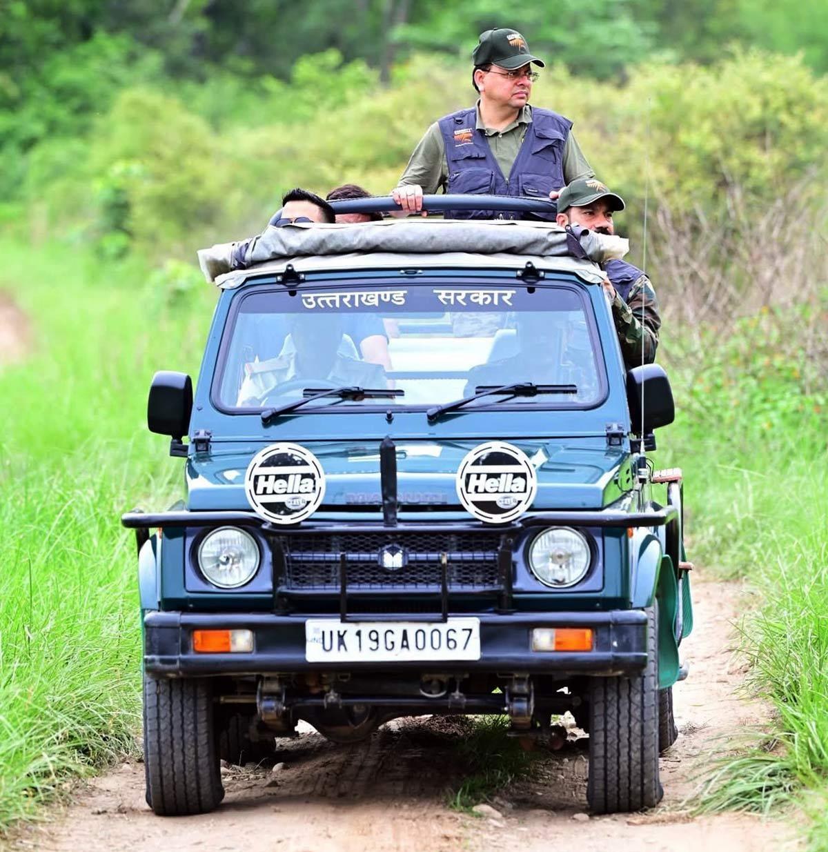 Uttarakhand Chief Minister Pushkar Singh Dhami set out on a jungle safari at the Jim Corbett National Park on Sunday, July 6, 2025.