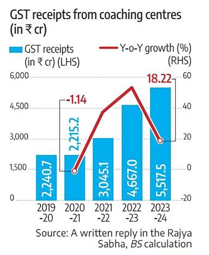 The goods and services tax (GST), imposed at 18 per cent on coaching centres, can give a rough gauge of the industry.