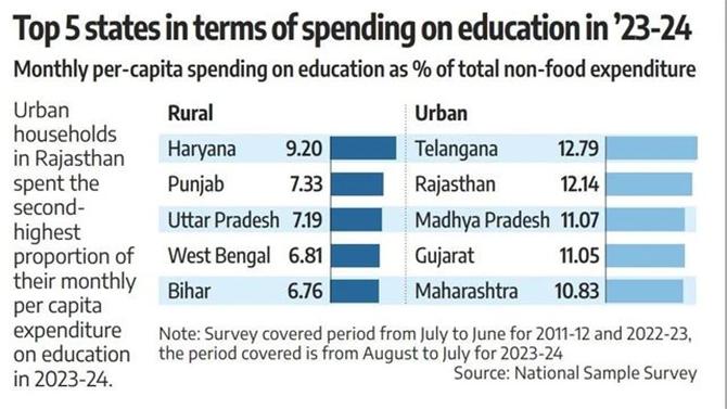 Urban households in Rajasthan spent the second-highest proportion of their monthly per capita expenditure on education in 2023-2024.