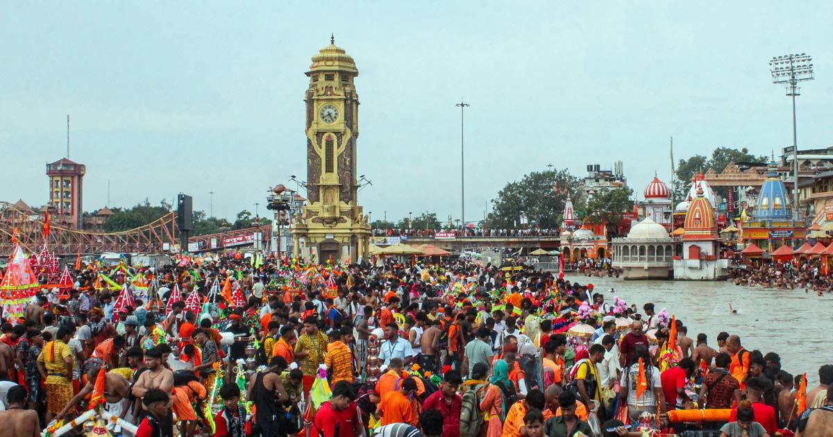 Large crowds gathered in Haridwar and Prayagraj on the first day of Shravan to take home water from the Ganga.
