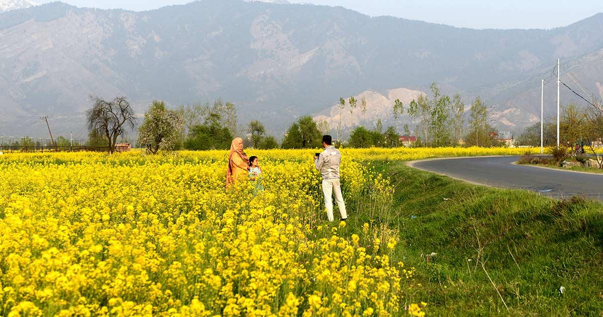Kashmir's mustard fields are in full bloom and the yellow fields give the valley a gorgeous and surreal appearance.