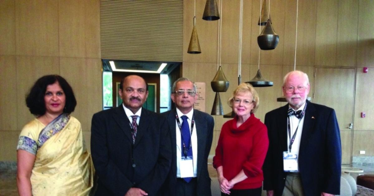 Dr Savitri Singh-Carlson, Dr Madhavan Pillai, Dr Bhaskar Balakrishnan, Jeanne Sewell and Dr Lawrence Lessin at the Indian Cancer Congress.