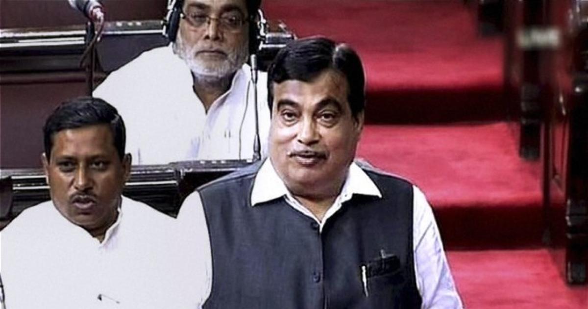 Union Minister Nitin Gadkari speaks in the Rajya Sabha in New Delhi. Photograph: PTI Photo/TV grab